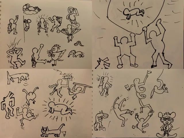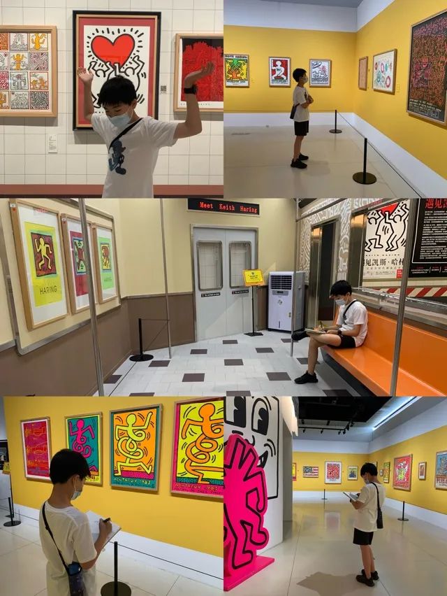 娃特别喜欢凯斯哈林画的涂鸦小人,看的很开心,还自己临摹、创作了好几幅画。回家后又在黑板上继续作画,以前老喜欢画火柴棍小人,自从看了这个展,就改成画凯斯哈林式的涂鸦小人了。