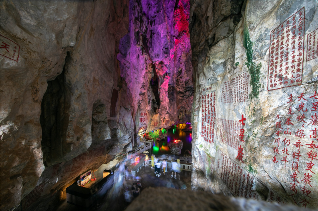 兼阳朔之山、西湖之水,七星岩早在唐代就已负盛名。开元年间,书法家李邕途经端州,与友僚同游七星岩,进入恍若人间仙境的石室水洞,触景生情,写下《端州石室记》,刻于石壁。