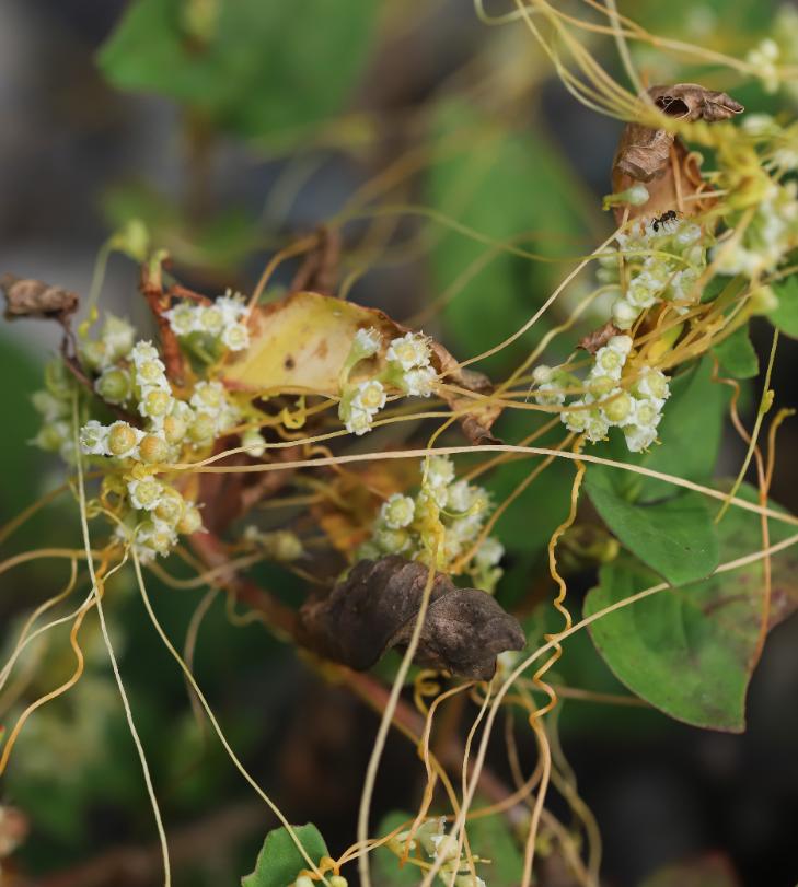 菟丝子是一种寄生植物,一年生寄生草本。茎缠绕,黄色,纤细,无叶。繁殖能力非常强。是自古以来的治病良药,现也是有名的害草。菟丝子也由古文中的楚楚可怜模样变身成为令人头大的侵略者。