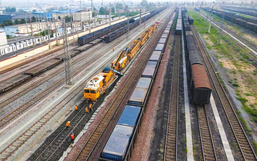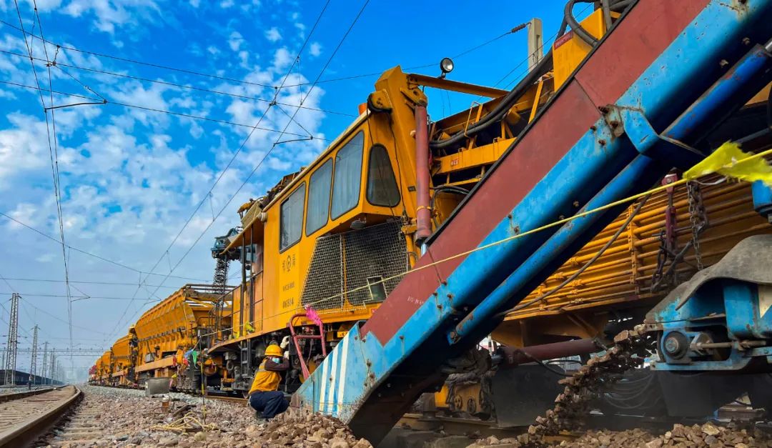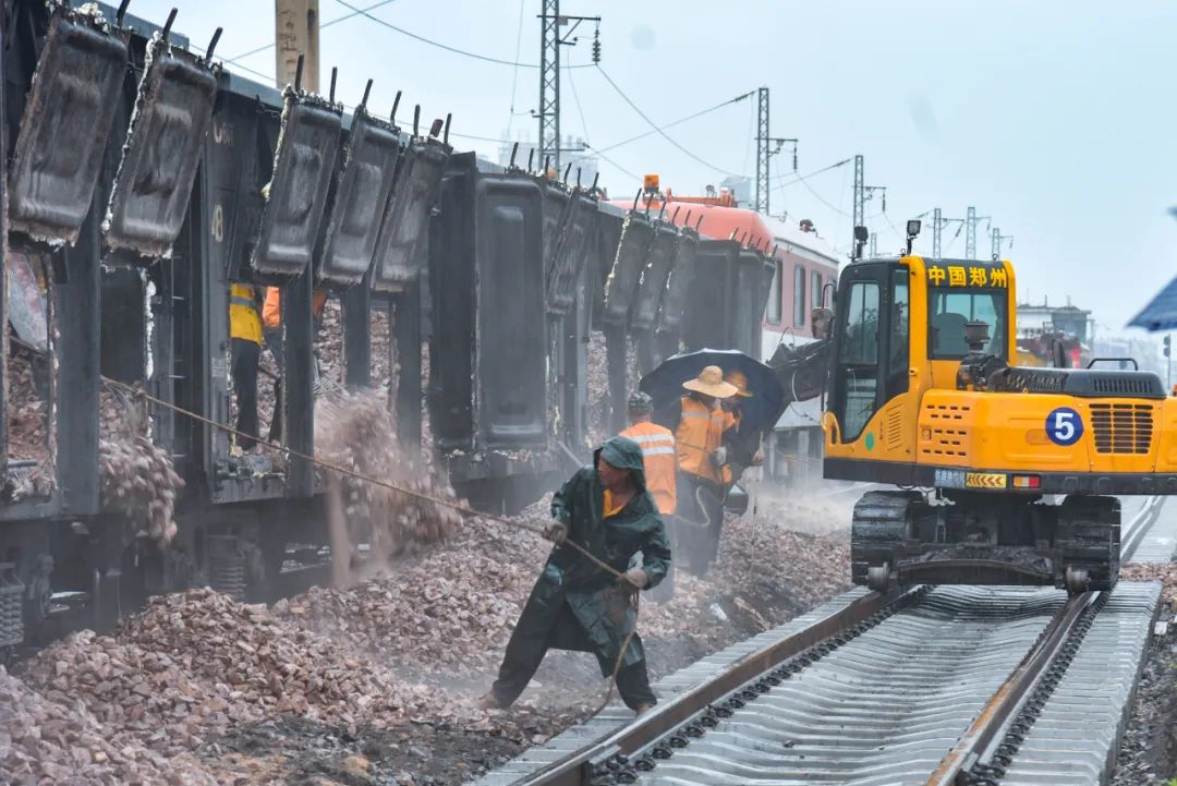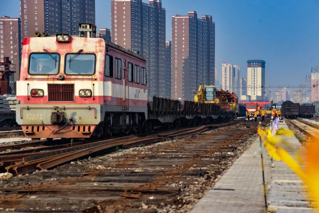 洛阳东编组场股道换轨施工已进入收尾阶段,已完成铺设钢轨2.2公里,更换轨枕3000余根,补充道碴1300m⊃3;。改善了股道线路框架结构,进一步提升了两大货运站场设备的稳定性及货车编组接发能力,为后续列车接发、解体、编组作业提供了更可靠保障。
