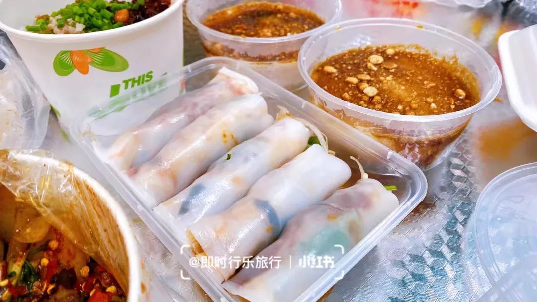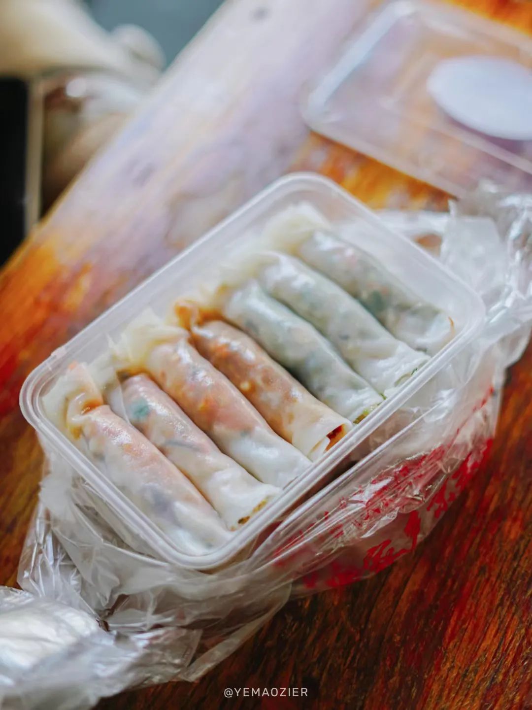 小红书©️ 夜猫子二薄而透光的粉皮抹上香菇酱、番茄辣酱或青椒酱打底,再包裹住折耳根、酸萝卜、黄豆、豆芽、海带丝等最鲜的味道,每个都是不同口味。
