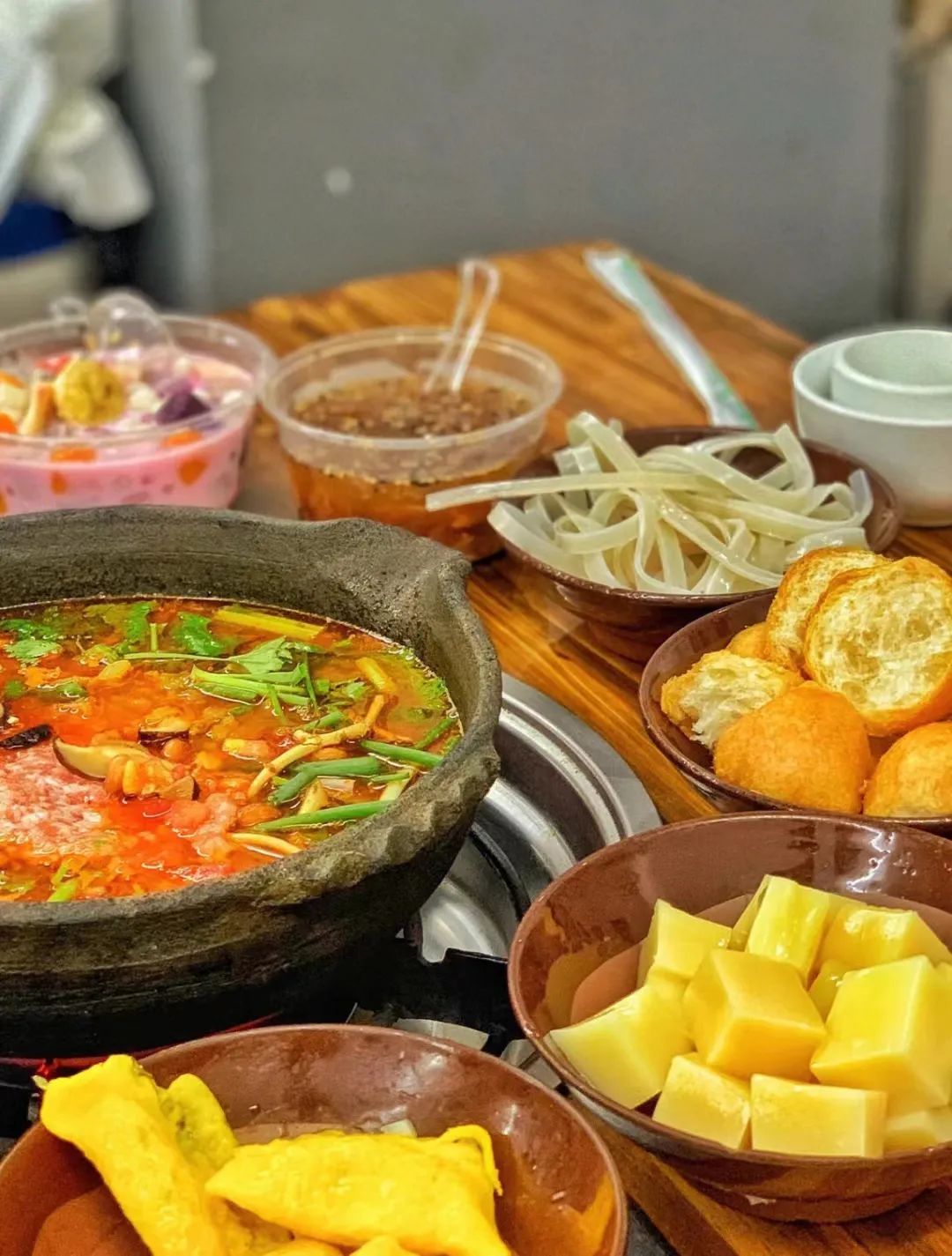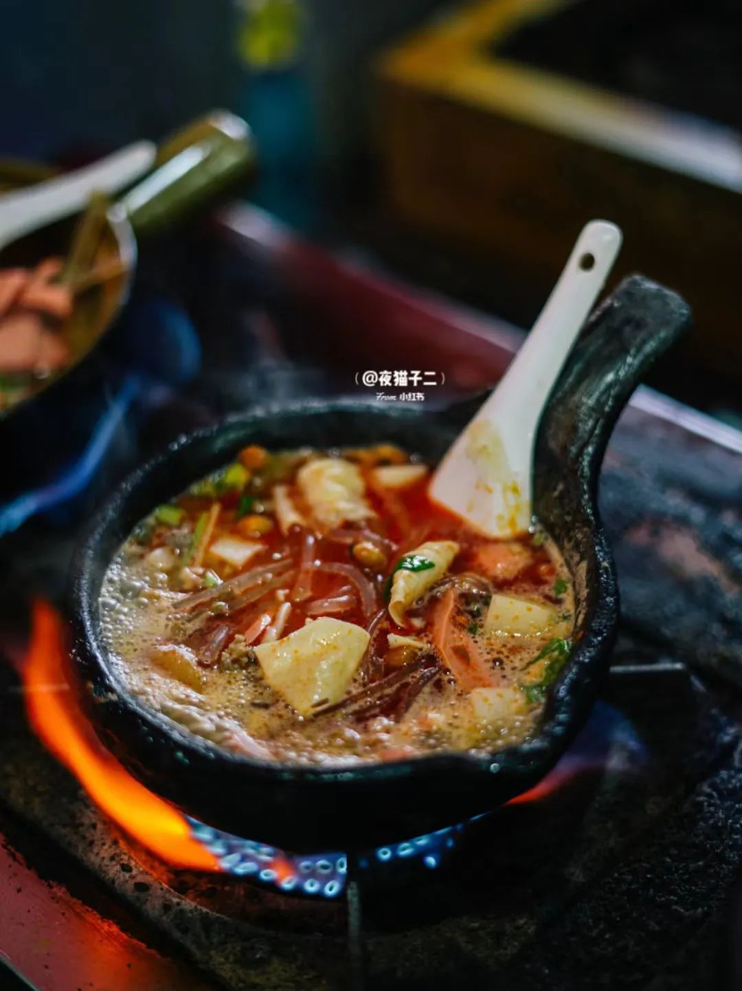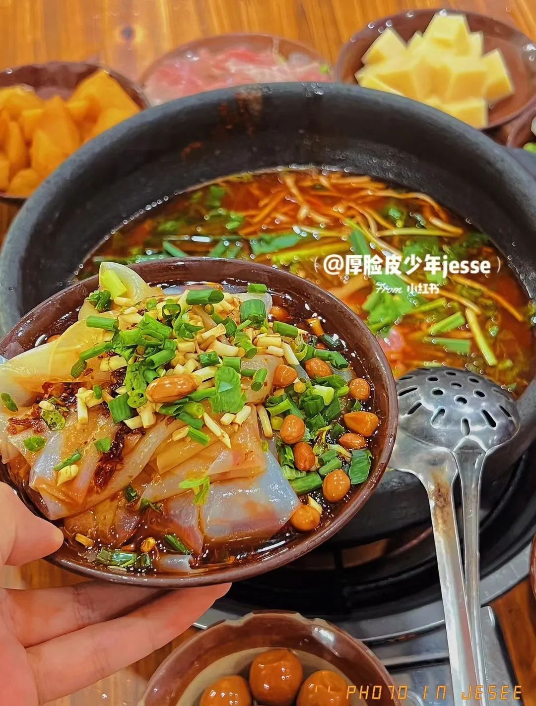 小红书©️ 旅游定制师-云帆秘制的酸辣蘸水中,沸腾着肉片、藕片、冻魔芋、土豆片与吸饱汤汁的米豆腐,越煮越香,越煮越入味,让人一不小心就迷失在这四处飘逸的香气之中。