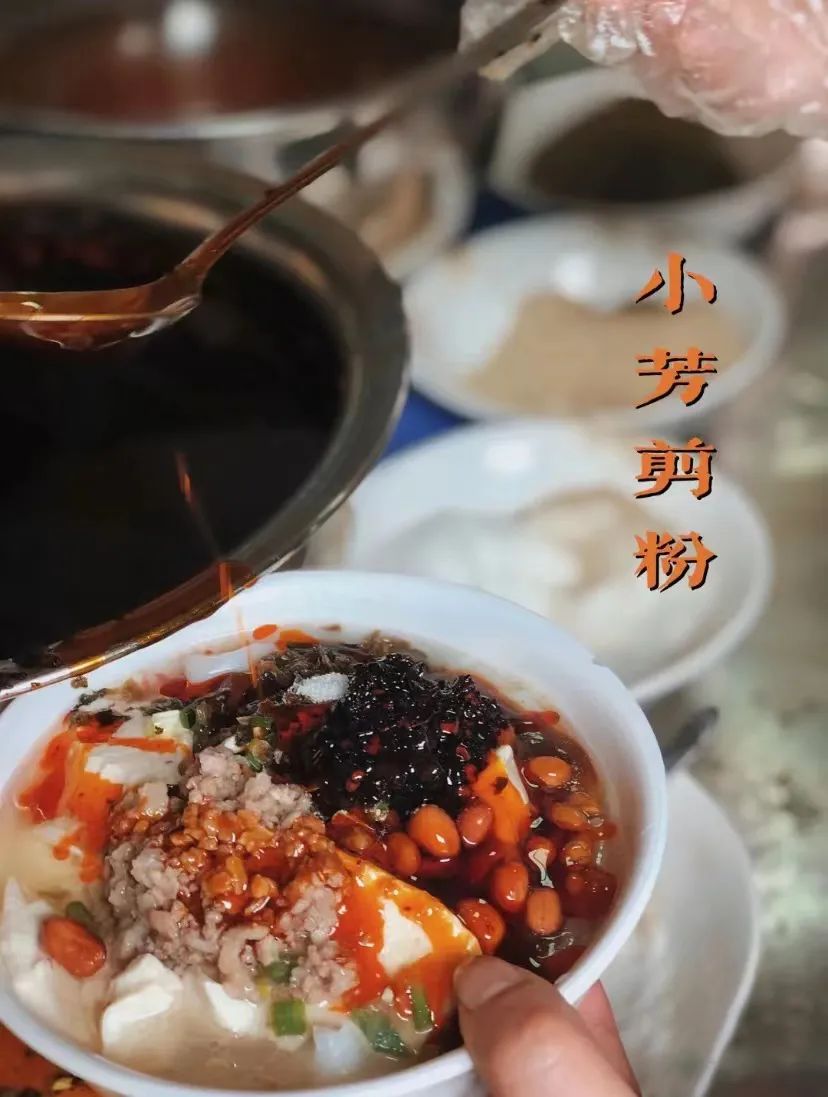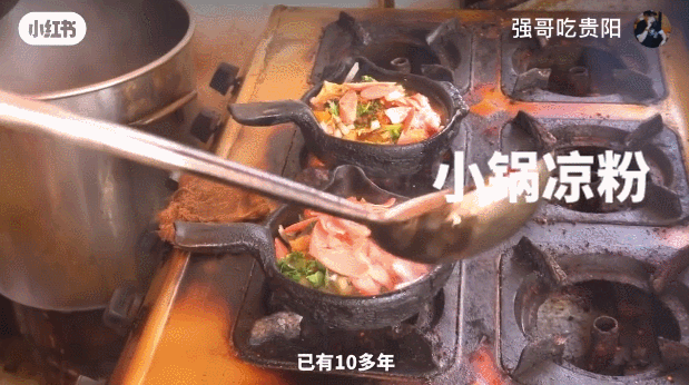 小红书©️ 睡眠不足点一份小锅凉粉,只见老板麻利地将酸萝卜、豆皮、酱油、粉条、苕粉、海带、凉粉等食材放入锅中,一不小心就盛得满满当当。