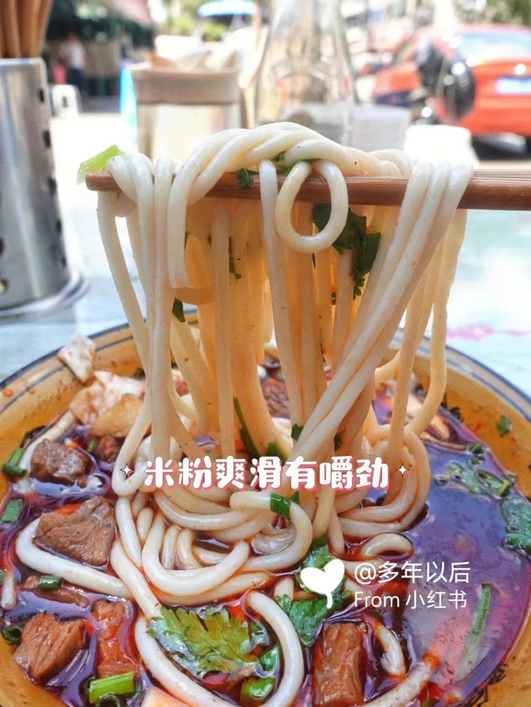 小红书©️ 夜猫子二先来一碗香气四溢的牛肉粉醒神,加点辣椒一碗吃到酣畅淋漓,再排队买一碗油炸粑稀饭,吃到满足后打包带走一份破酥包,味蕾从此为之沦陷。