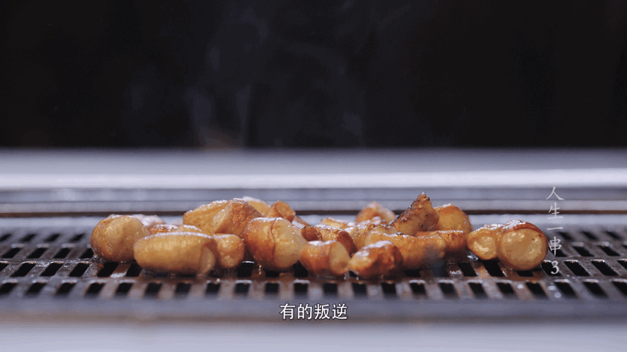 烤炉刷上油,小肠剪成段,高温与油脂的激烈碰撞产生着噼里啪啦的香气,馋得人口水横流。