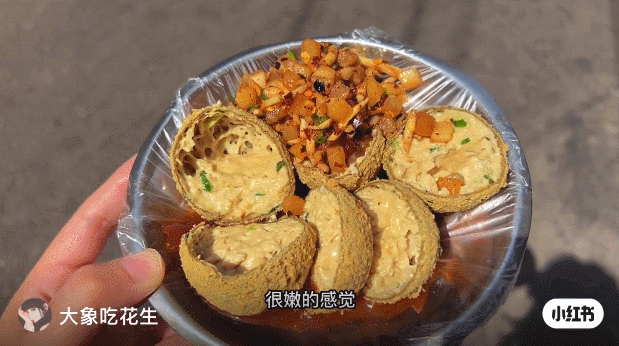 小红书©️ 夜猫子二然后淋上秘制的辣椒油蘸水,挖一勺霉豆腐,直接注入灵魂。