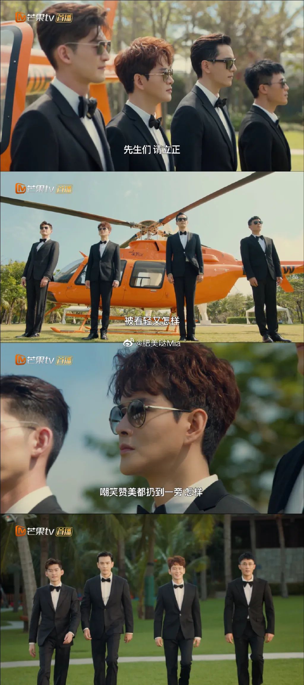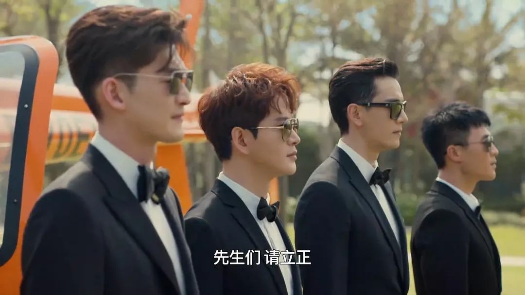 电视剧开头的一个情节,四位男主角接受了婚礼伴郎邀请,