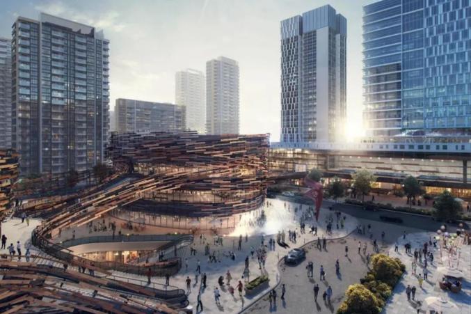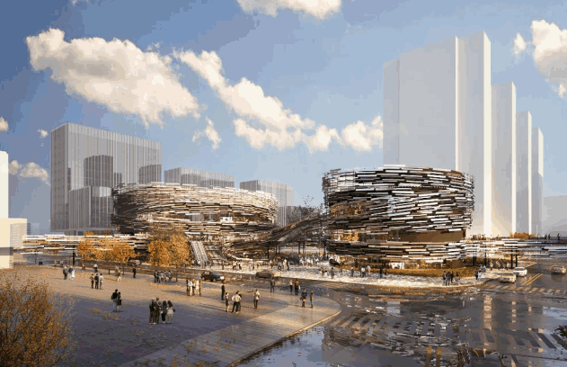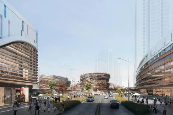其中国际大师隈研吾亲自操刀设计的双子星剧场是一大亮点,不仅建筑形态酷似鸟巢造型,外围还有一圈丝带包裹,预计建成后又是一个网红打卡地。