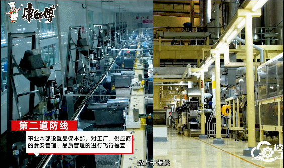 (画面来自人民网“透明工厂”直播)此外,作为涉及国计民生的龙头企业之一,“夯实食品安全体系,守好食品安全底线”是康师傅方便面的立身之本。近年来,康师傅先后投资5亿元打造了国际水平的食品安全检测中心,近3000多人的食安管理团队每年对旗下相关原料及最终产品检测超过350万次。而在产品供应链中,设置了食品安全及品质管控三道防线,第一道是供应商或者工厂端,以自我检查和自主品管为主。第二道防线是在事业本部设置品保本部,对工厂、供应商的食安管理、品质管理进行飞行检查;第三道是食安研管中心,进行食安政策方向和资源整合。