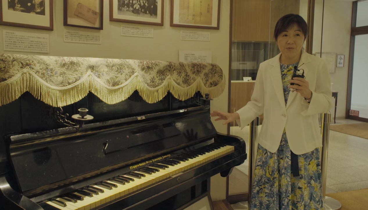 小坂文乃介绍宋庆龄在松本楼弹过的钢琴。 澎湃新闻 图