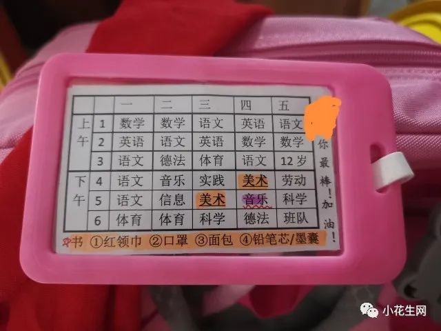 自己的东西,自己收。作业说完了,那么就说到卷铅笔,红领巾,带书,带彩笔,带陶笛等等了,我的原则也是不帮。我打印好了课程表,制作成小牌子,给她挂在书包上