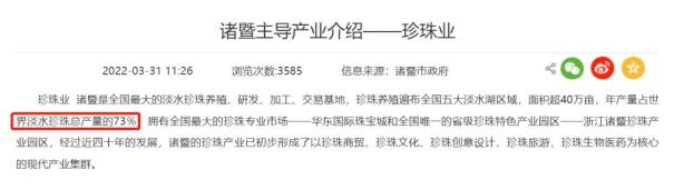 浙江诸暨市贡献了世界淡水珍珠总产量的73%