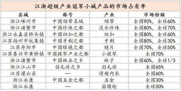 在江浙这些小县城里,产业很小,但几乎都做到了行业内的天花板,甚至从国内走向全世界,成为中国超级产业冠军