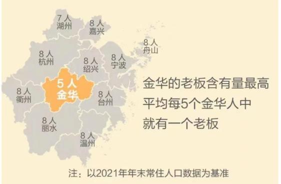 平均每5个金华人里就有1个老板、湖州人里每7个就有1个老板...