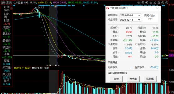 记者注意到,案件中张某全部融资资金用于购买仁东控股,该股票于2020年11月25日连续遭遇14个跌停,跌幅77.13%,而在张某跌破平仓线12月3日之后,依然还有7个跌停板。