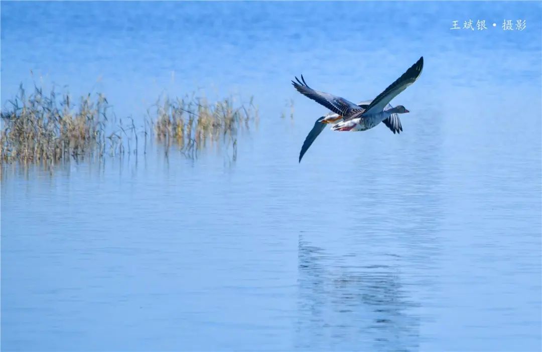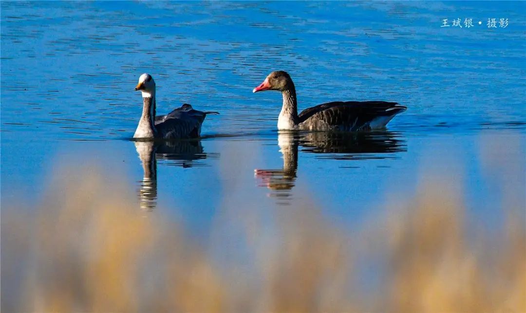 红嘴雁又称灰雁。主要栖息在不同环境的淡水水域中,常见出入于富有芦苇和水草的湖泊、水库、河口、水淹平原、湿草原、沼泽和草地。