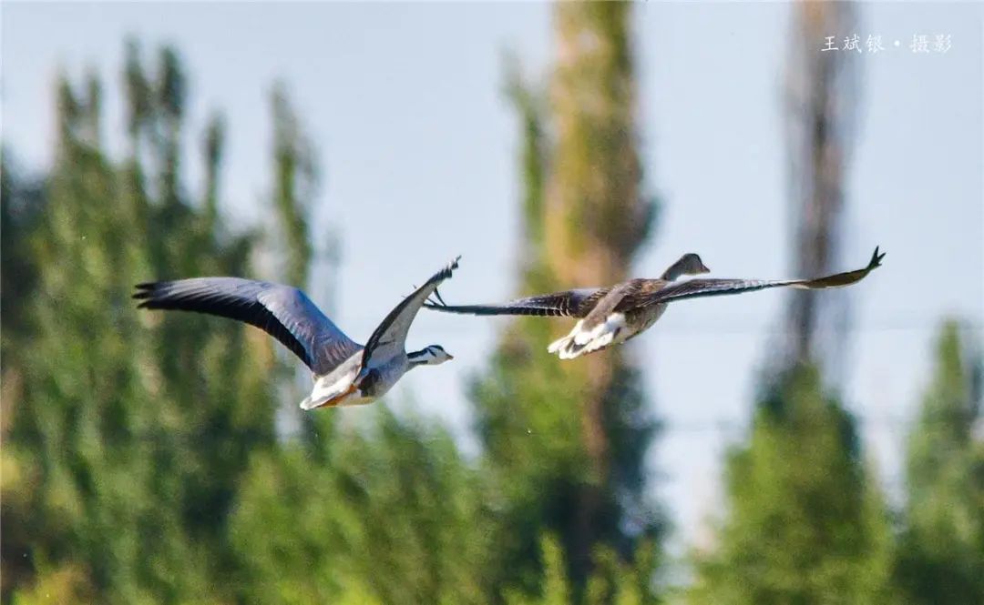 近日,国家二级野生保护动物斑头雁、红嘴雁等雁类候鸟临时落户敦煌鸣沙山下党河古河道水域。成为大漠敦煌又一道水上风景。