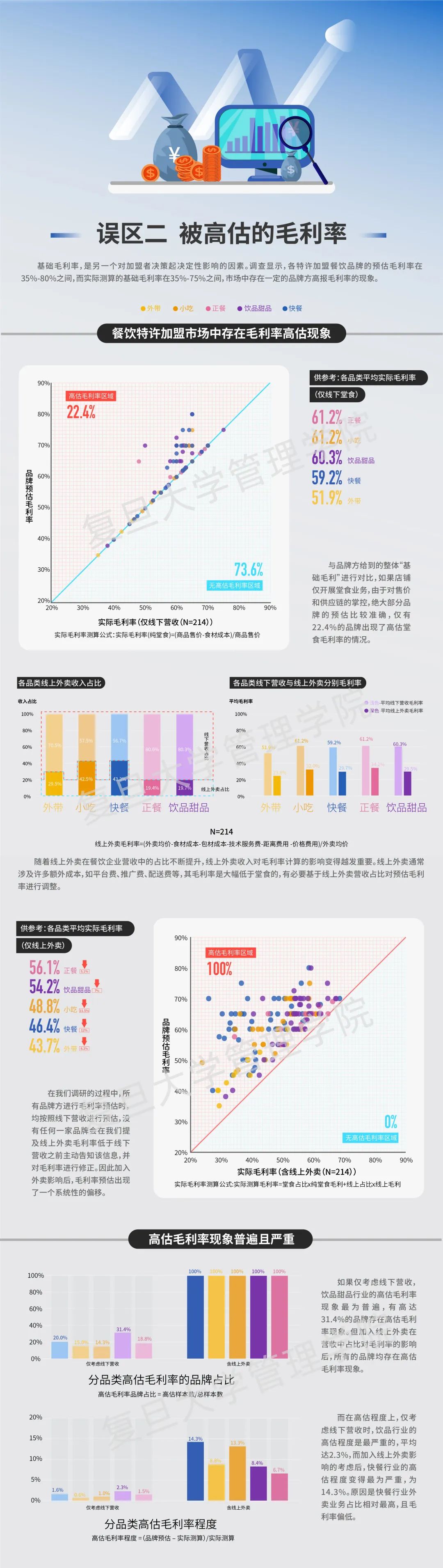 误区二:被高估的毛利率基础毛利率,是另一个对加盟者决策起决定性影响的因素。调研显示,各特许加盟餐饮品牌的预估毛利率在35%至80%之间,而实际测算的基础毛利率在35%至75%之间,市场中存在一定的品牌方高报毛利率的现象。