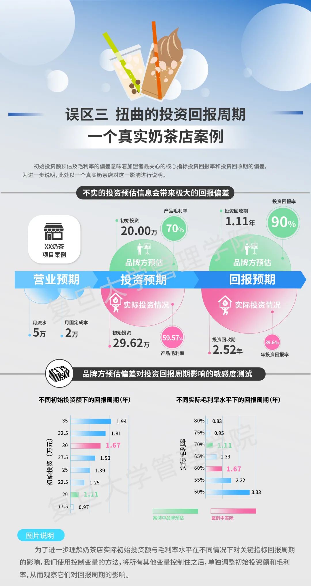 误区三:扭曲的投资回报周期对于那些缺乏餐饮行业经验的投资者,他们在投资初期最关注的就是投资回报,通常会用投资回收期来判断。然而,这样的预测事实上与投资金额和利润率这两个变量相关,分析发现,正是通过对后两个变量提供信息的扭曲导致真实的投资回收期与前期得到的承诺大相径庭。