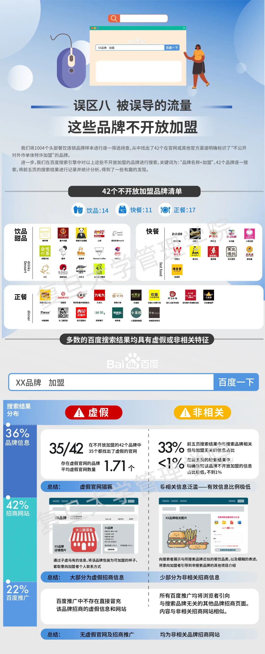 误区八:被误导的流量近年来,骗取小白投资者的“套路加盟”层出不穷。通过调研这些案件发现,加盟者受骗的最主要渠道之一便是导向不明的“招商加盟”网站。