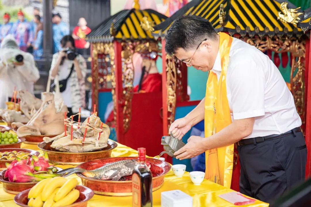 十年盛景,一片初心。今年正好是非遗“酒仙会市”重塑后的十周年,也是“酒仙会市”被列入浙江省“民间民俗·多彩浙江”优秀传统文化系列活动的第一年。祭礼中,恭请酒仙、龙王、财神三圣是每年必不可少的环节,敬酒奠酒更是恭敬审慎,叩首拜礼,传达的是东浦人最朴实的心愿——祈盼来年风调雨顺,佳酿不断。