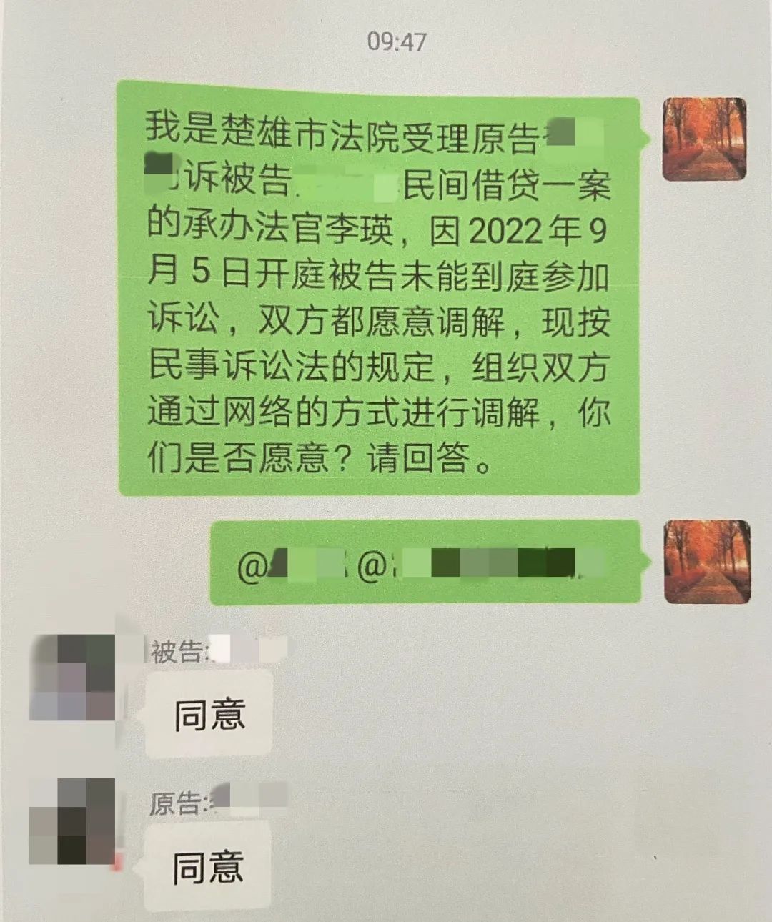 为进一步提升楚雄市金融纠纷调解中心特邀调解员业务知识和工作技能,9月13日,楚雄市法院举办金融行业特邀调解员业务培训会。15分钟微信群聊 让案结事了