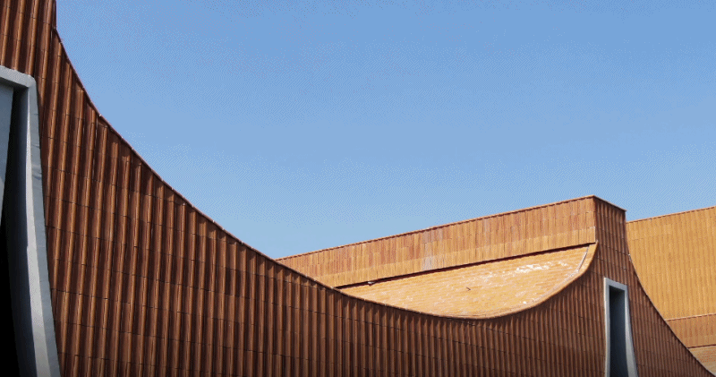 跳脱出仿唐风格的束缚,李立提取隋唐建筑中的“曲面大屋顶”元素,取其形,打造出现代混凝土的悬垂板结构,用于博物馆屋顶。
