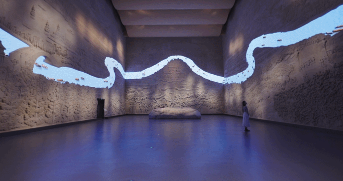 最后艺术家团队采用三维扫描的技术,对整个场馆3万多平米做了全方位点云扫描,拿到1:1的数字孪生模型。