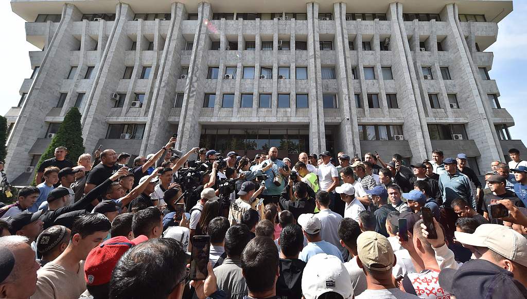 当地时间2022年9月16日,吉尔吉斯斯坦比什凯克,民众聚集在议会附近抗议。 视觉中国 图