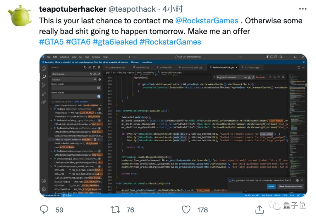 不过对游戏公司和玩家来说,更多的是坏消息。黑客声称已掌握两代游戏的源代码以及新作的早期测试版本,并嚣张地公开勒索R星: