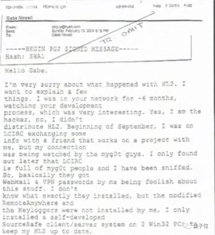 △黑客发送给V社创始人G胖的电子邮件最初定于2003年9月30日发售的《半条命2》因开发进度跳票,未曾想,当年10月2日,其三分之一的源代码被盗取、公开,在网络大肆传播。
