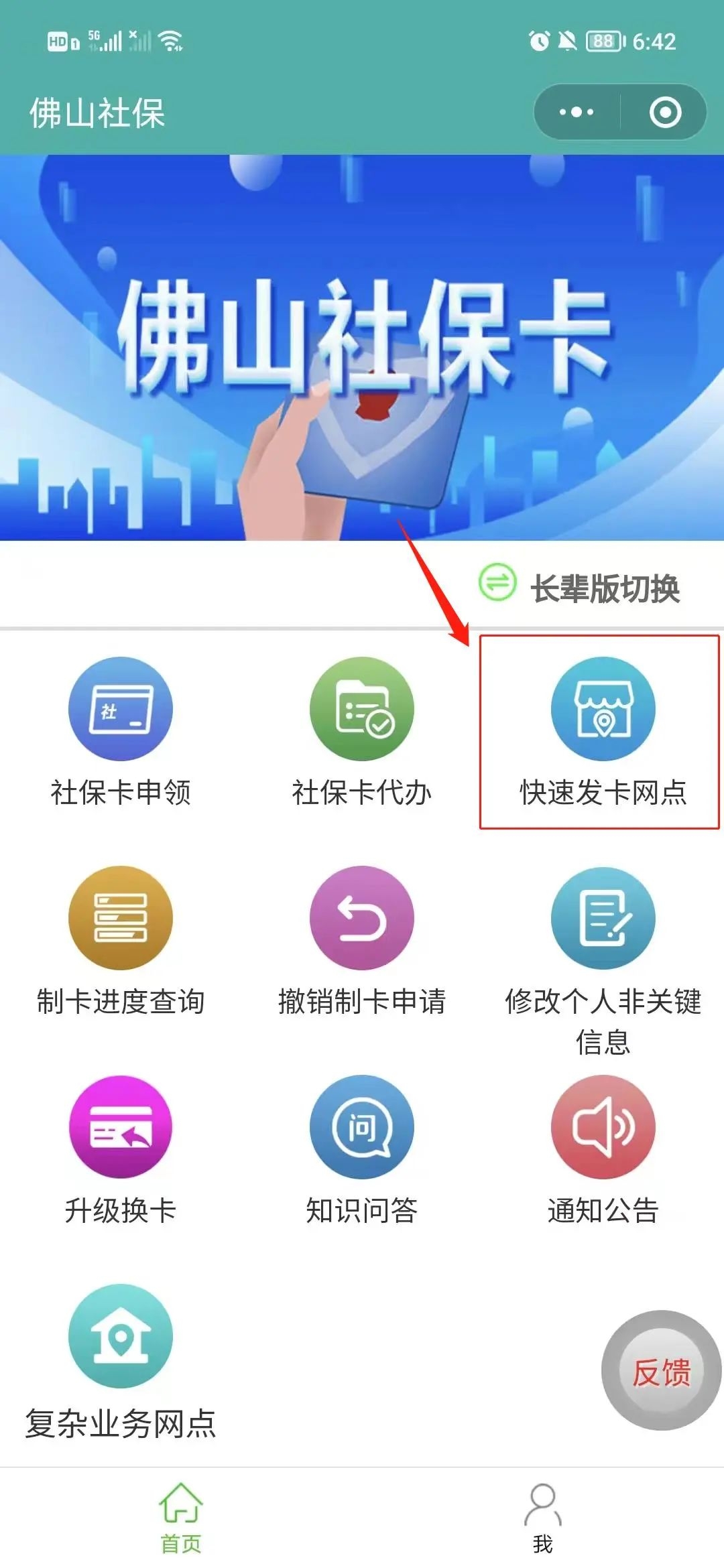 通过“佛山社保”微信公众号,点击菜单栏“社保卡服务”—“社保卡业务办理”—“快速发卡网点”。