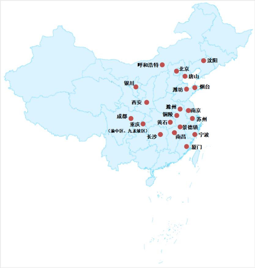 试点城市的分布覆盖了我国的北部、东部、中部和西部地区,具有较强的地域代表性,同时涵盖了一线城市、新一线城市、二线城市、三线城市和四线城市,这些城市中既有老工业城市(如:辽宁沈阳)、历史文化名城(如:江西景德镇)、风景旅游城市(如:福建厦门),又有国家中心城市(如:北京、四川成都等)。第一批城市更新试点城市分布如下图所示: