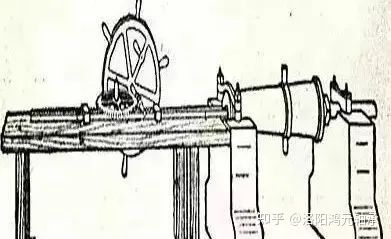十三世纪时期,机床原型也在发展,也总不能老是挂树上吧。这时候就有了用脚踏板旋转曲轴并带动飞轮,再传动到主轴使其旋转的“脚踏车床”,也称之为弹性杆棒车床,不过除了刀具是用金属外,操作原理还是跟原先一模一样的。