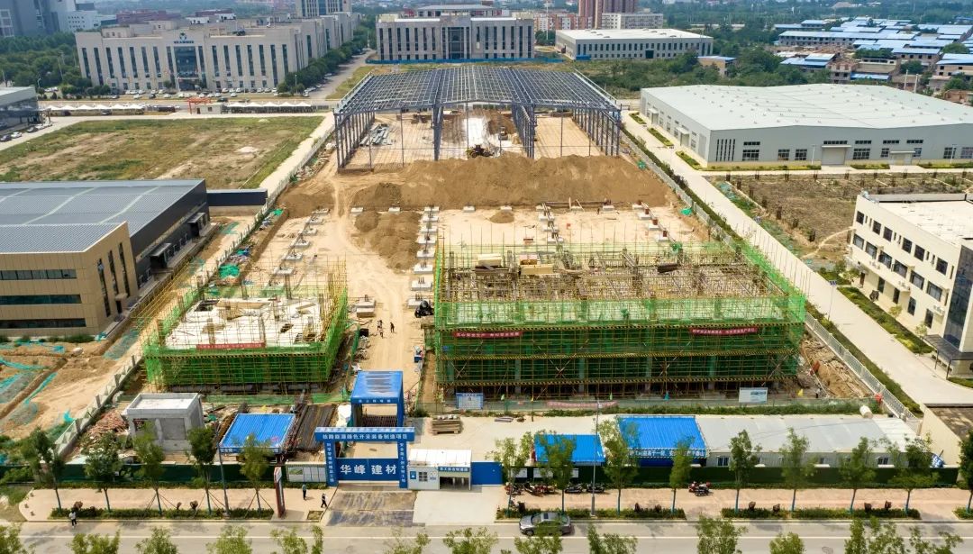 2022年9月目前,项目基础开挖及桩基施工完成,1#厂房基础施工及基础回填完成,正在进行钢结构安装;2#厂房基础及钢结构施工完成,正在进行室外管网工程及安装工程施工;综合办公楼及餐厅主体施工完成,正在进行二次结构施工。