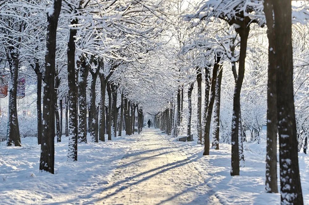 伯雍公园——冬。冬日暖阳,银装素裹冬天的阳光是和蔼可亲的