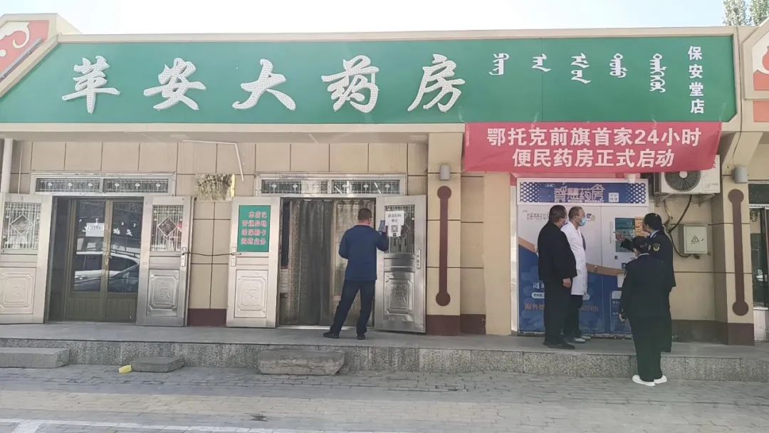 为了优化我旗营商环境,满足群众购药需求,特别是解决夜间群众购药难的问题。今年以来,旗市场监督管理局以问题为导向,积极引导药品经营企业解决问题,今天由鄂托克前旗苹安大药房连锁公司引进的24小时自助售药机正式投入使用,开机向群众售药。——鄂托克前旗市场监督管理局