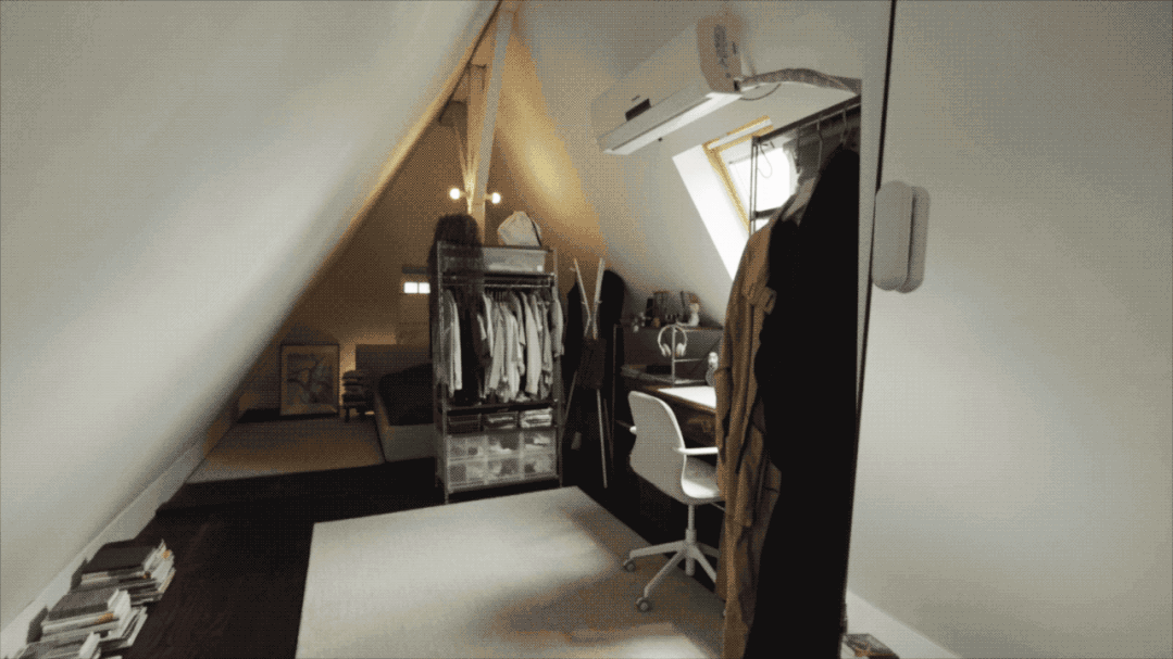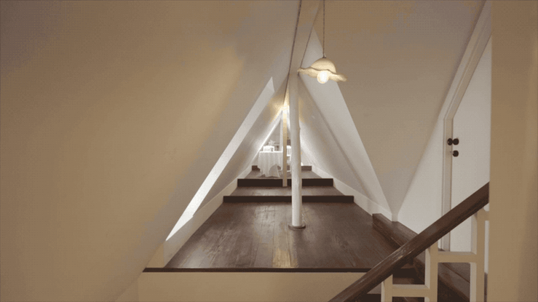 小阁楼卧室套房外的尖顶空间,是公共空间