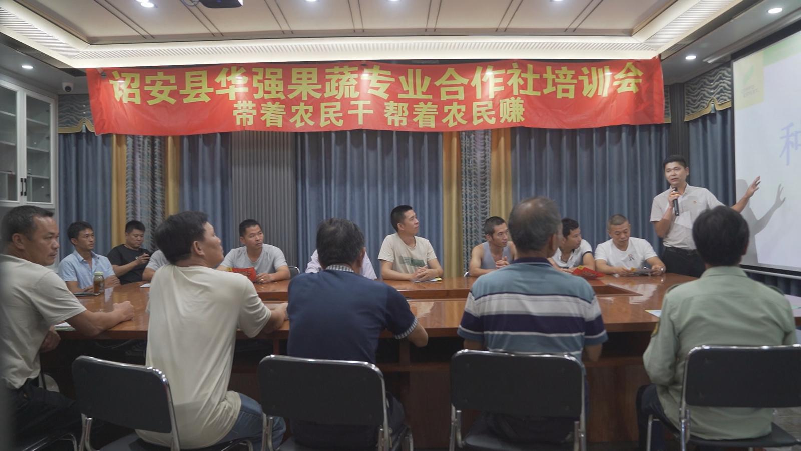 诏安县华强果蔬专业合作社组织社员开展技术培训。