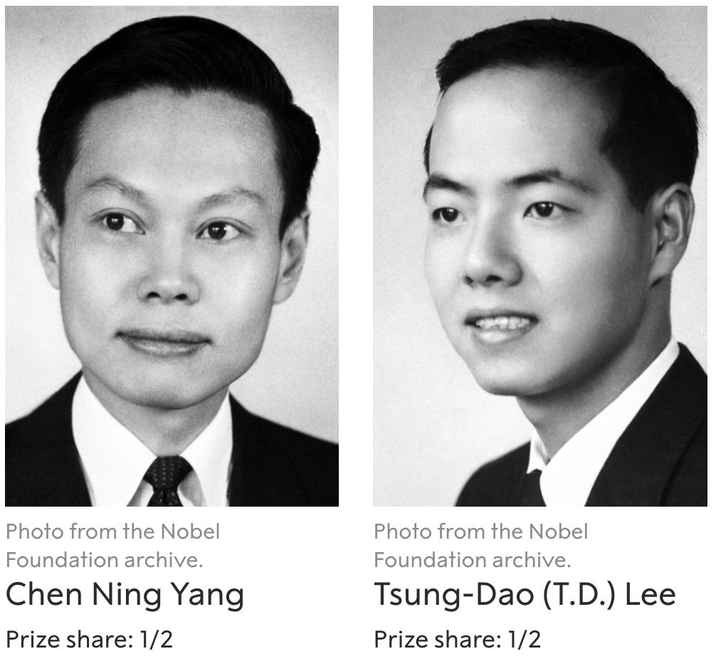 共同获得诺奖的杨振宁(左)和李政道(右)|nobelprize.org生子当如“杨大头”