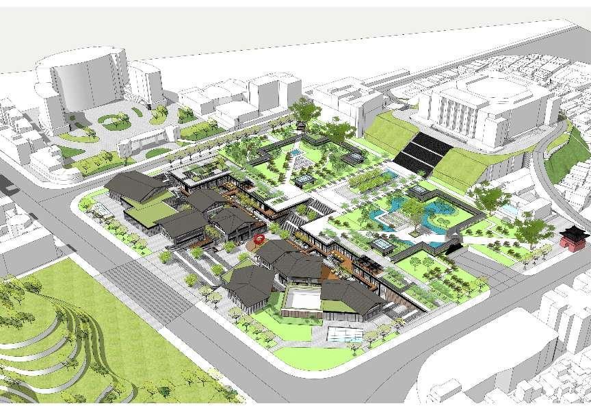 特点方案拟承续岭南园林“前厅后院”的经典格局,打造“半亩商街半亩庭院”,连通城市文化发展带和市民活动轴。建筑风格提取清晖建筑元素,植入特色商业等业态,打造清晖文旅街区;景观设计凸显岭南建筑园林的现代演绎,以廊亭围合空间,内外景观互为借景,打造商业的立体绿化。