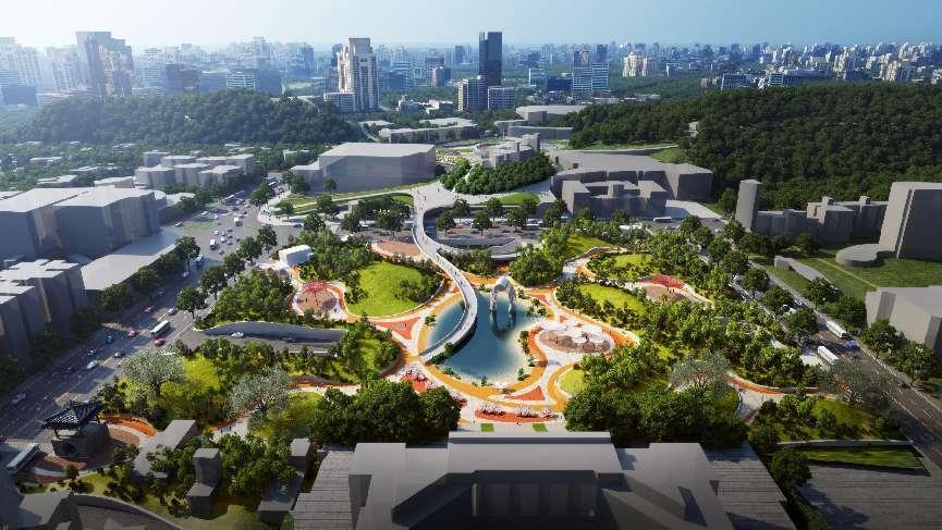 设计理念以凤尾为设计语言,打造从凤岭山到钟楼公园的城市绿洲。