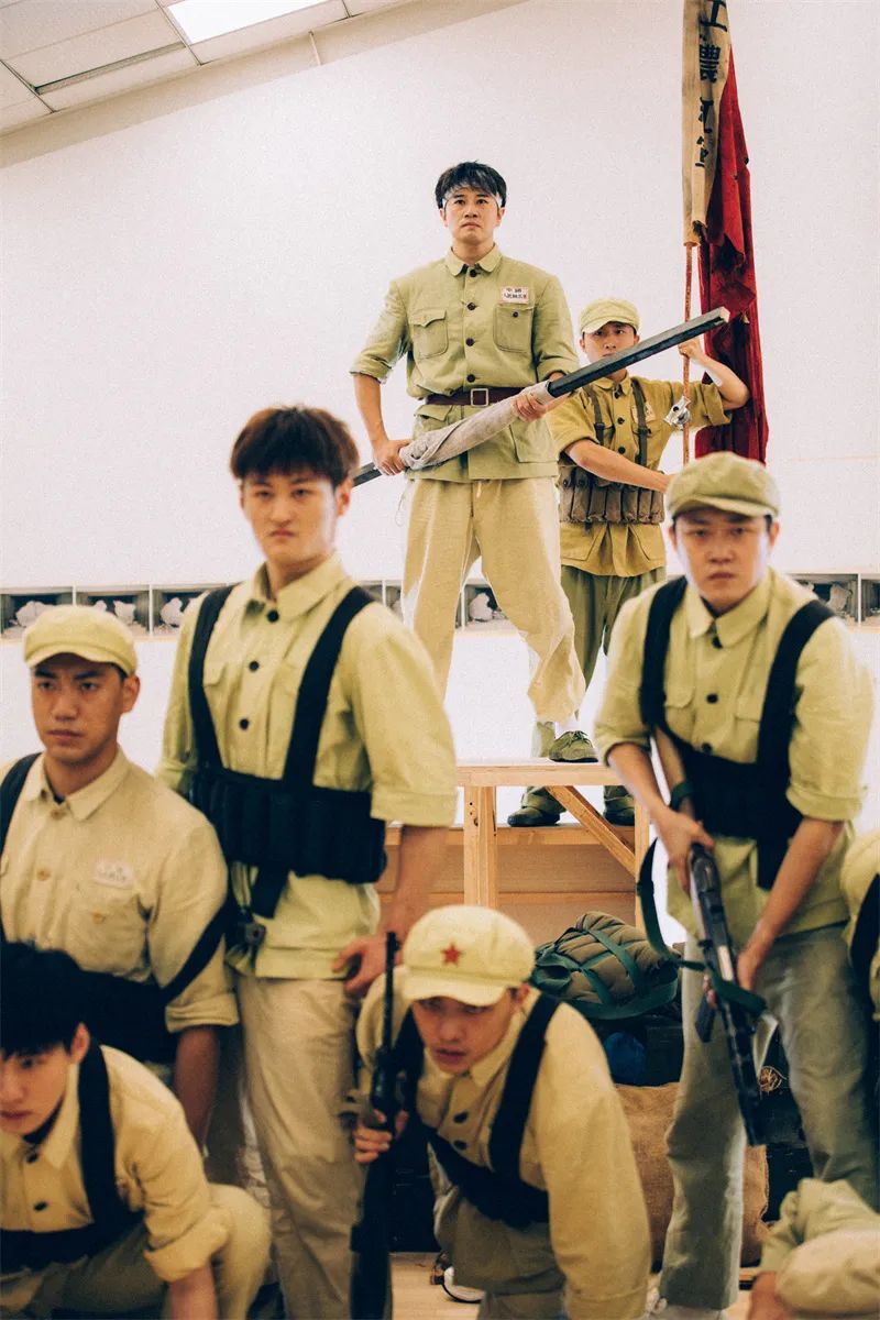 不过,身处和平年代太久,经典台词与歌曲,之于年轻一代来说,似乎浓缩成了一段陌生又熟悉的符号。“那段记忆太遥远了!”这是所有青年演员不约而同的一句感慨。这句感慨也道出他们出演红色经典的压力与担忧——身处和平年代,如何演好大无畏的英雄人物?进组短短一个月,经由军训党课、导演胡宗琪讲戏抠戏、中心文工团老兵亲身回忆,他们一点点将记忆深处的英雄重新打捞、立于舞台。与此同时,他们也经历了一场重燃家国情怀与艺术初心的精神洗礼。