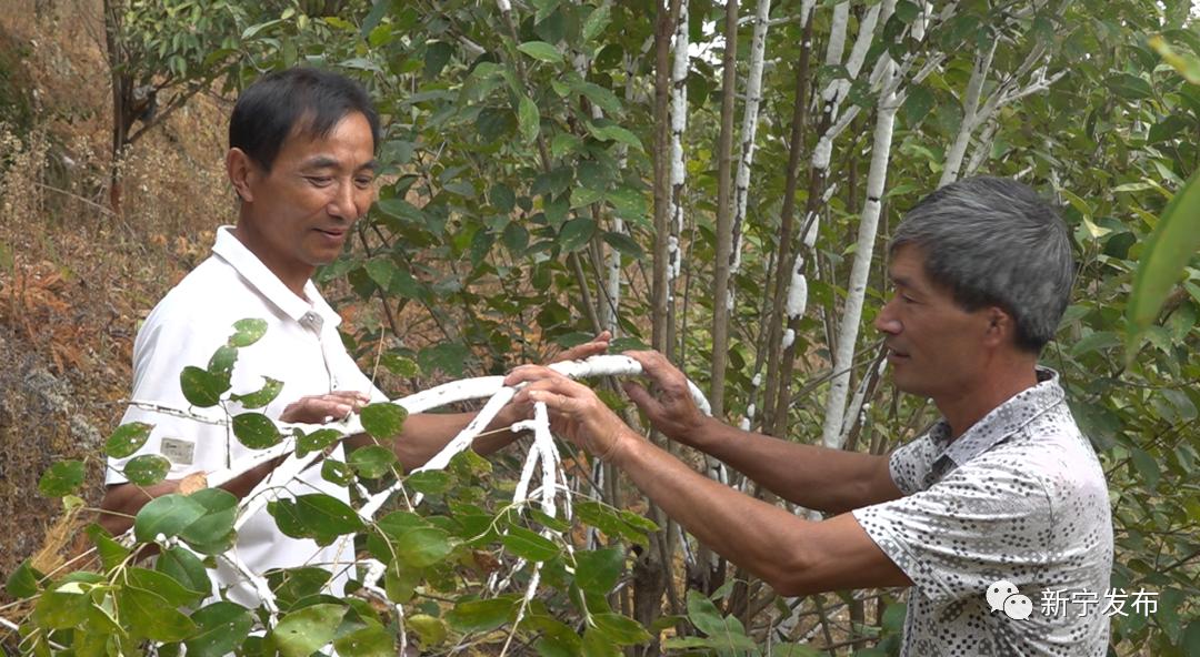 9月20日,蜡农陈春凤和合作社的工人正在采摘白蜡。今年是合作社成立的第五年,除了以前留下来的白蜡树,新种的蜡树也开始丰收了。蜡园采用隔年放白蜡虫的方式,充分保障白蜡的质量及树的成长。今年天气干旱,白蜡长势不及往年,但是依然收获满满。据了解,蜡树俗称女贞树,是生态林也是产业林。白蜡虫,别名蜡虫,为中国特产,是一种经济价值很高的动物蜡。蜡农们把虫种寄生在蜡树之上,虫种会孵化出一种白蜡虫,再把白蜡虫寄生于白蜡树上,产出白蜡,白蜡可广泛用于化工、航空、国防工业、医药等领域,是天然、宝贵的原料。当地的农民,利用蜡树,养殖白蜡虫,发展蜡虫产业,靠着小小白蜡虫增收致富。