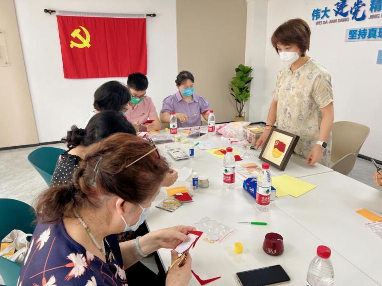 泰禾红御党支部与宝山区委组织部机关第二党支部开展的“非遗制党徽、传承话初心”七一共建活动,选在了以实力圈粉无数的泰禾红御党群服务站举行。活动以参与制作布艺堆画的形式,将对党的祝愿融入作品中,庆祝党的生日。在以“网红”站点吸引党员群众参与“打卡”的同时,也让传统艺术焕发出了新的生机,让大家在趣味中感受艺术,在艺术中表达对党的无限热爱和对党最朴实最真挚的祝福。