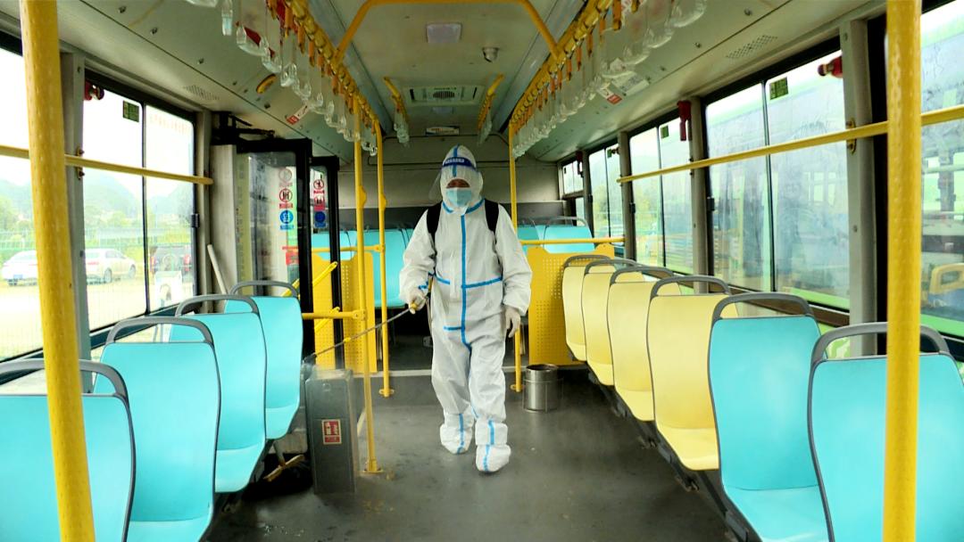 普定汽车站办公室主任周明华介绍:“汽车站现在每天投放公交车28辆左右,在日常发车之前,都会对车辆进行消毒,同时督促司乘人员戴好口罩、扫码测温,做好疫情防控常态化工作。”