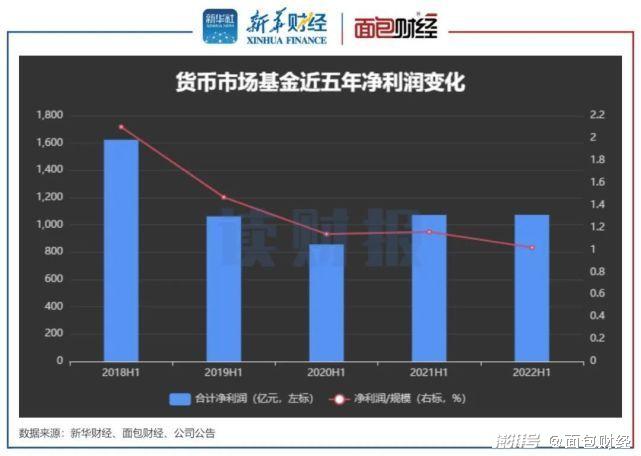 另外,货币市场基金的盈亏规模比也相应下滑,从2018年上半年的2.1%降至2022年上半年的1.02%。