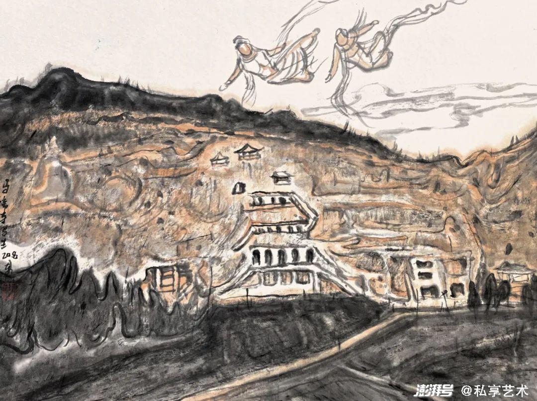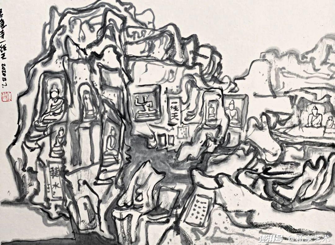 巫卫东《炳灵寺》33x45cm 纸本水墨 2022