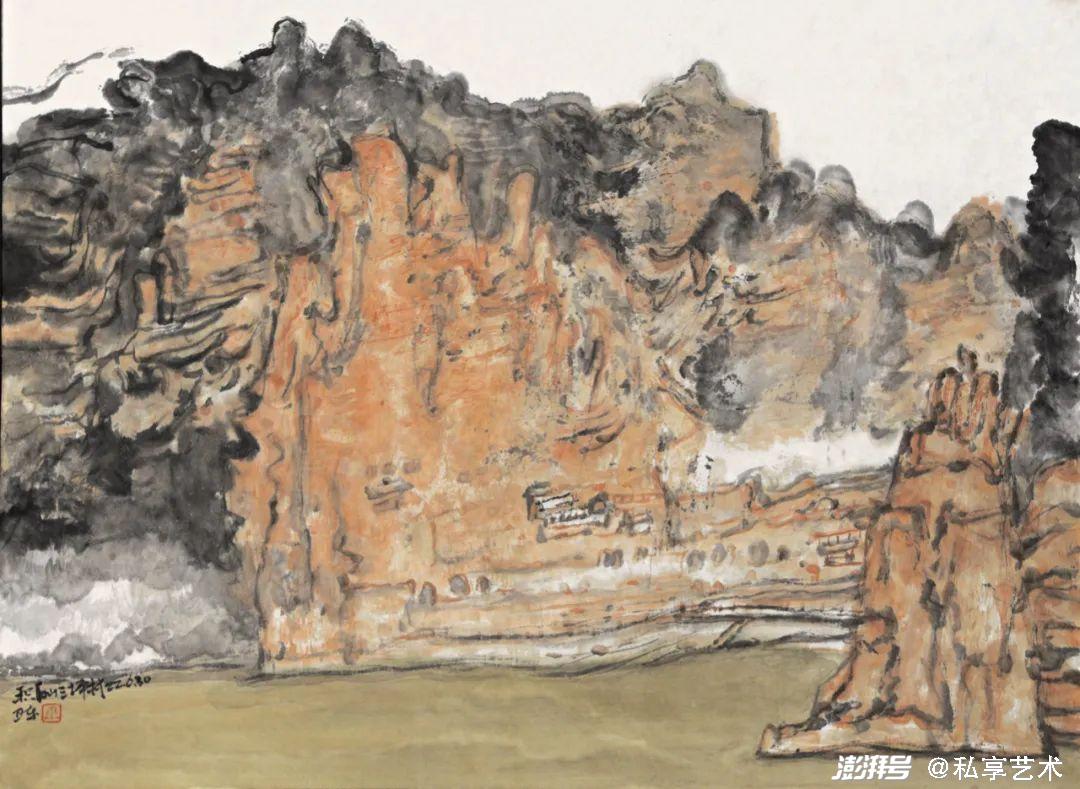 巫卫东《张掖马蹄寺》33x45cm 纸本水墨 2020