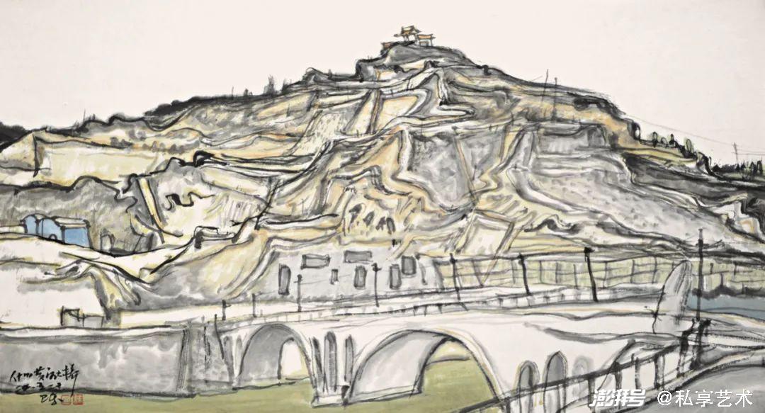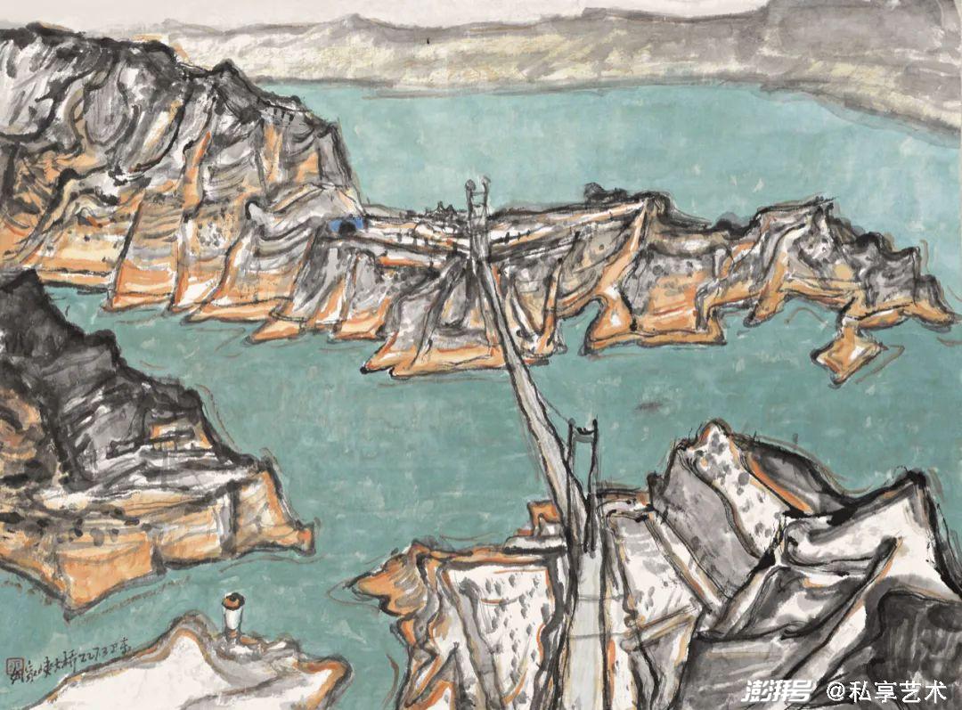巫卫东《刘家峡黄河大桥》33x45cm 纸本水墨 2022